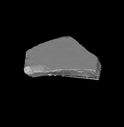 The huge fragment seems to have been part of a slab edge. It does not show any other distinguishing characteristics.