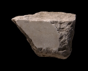 Identification There were many blank areas on the Marble Plan, including the spaces occupied by the Tiber River (see fragment 24d), by gardens, arenas, temple precincts and courtyards--in short, any space devoid of architecture or human construction. In addition, several rows of large marble slabs occupied the entire lower part of the wall of the aula on which the Plan was installed, and perhaps other walls as well. Blank fragments like this one could have originated from any of these areas.
