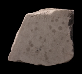 Identification There were many blank areas on the Marble Plan, including the spaces occupied by the Tiber River (see fragment 24d), by gardens, arenas, temple precincts and courtyards--in short, any space devoid of architecture or human construction. In addition, several rows of large marble slabs occupied the entire lower part of the wall of the aula on which the Plan was placed, and probably also the other walls in the room. Blank fragments like this one could have originated from any of these areas.