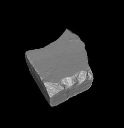 The large, blank fragment has two flat slab edges meeting at a corner.