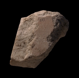 The fragment was part of a slab edge. It is blank and does not show any other distinguishing features, such as guidelines or veining lines.