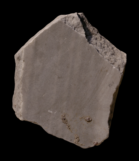 The fragment was part of a slab edge. It is blank but shows clear veining lines.
