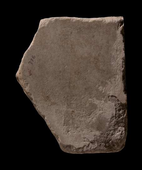 The fragment was part of a slab edge. It is blank and does not show any guidelines or any other distinguishing features.