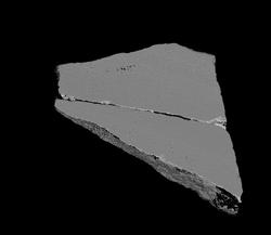 The large fragment is blank and does not show any guidelines or any other distinguishing features.