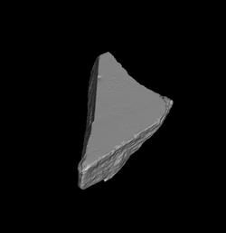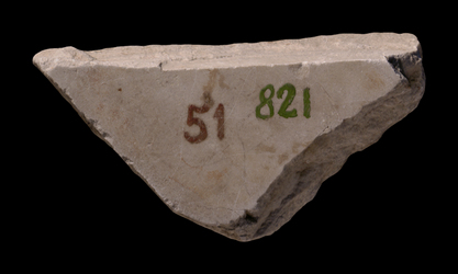 The fragment is blank and does not show any guidelines or any other distinguishing features. Part of the upper, straight edge is smooth and looks like it might have been sawn off.