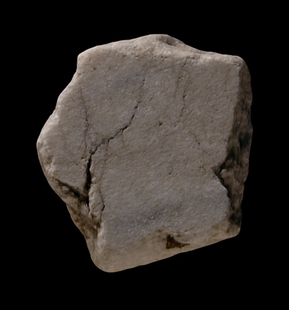 Identification There were many blank areas on the Marble Plan, including the spaces occupied by the Tiber River (see fragment 24d), by gardens, arenas, temple precincts and courtyards--in short, any space devoid of architecture or human construction. In addition, several rows of large marble slabs occupied the entire lower part of the wall of the aula on which the Plan was installed, and perhaps other walls as well. Blank fragments like this one could have originated from any of these areas.