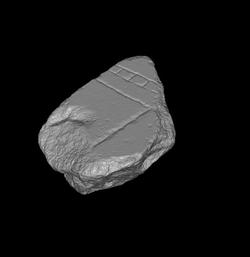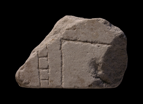 | Description The fragment was part of a slab edge. A row of small rooms to the left faces a large, probably open, space of which only two sides are visible.