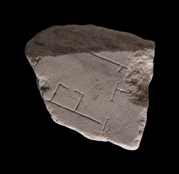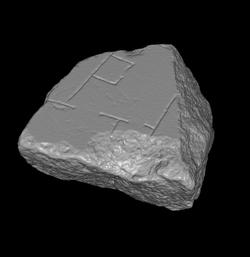| Description The fragment depicts a large room with two openings to other rooms on the left. Along the top wall of the large hall lies a small enclosure with one central opening.