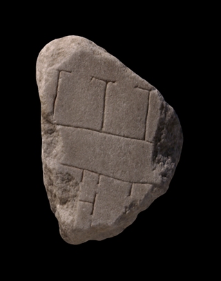 | Description A street separates a row of large rooms, top, from another building, bottom. Only a corridor, three or four small stalls, and a couple of rooms are visible in the building at the bottom of the fragment. N.B. One wall of the corridor, close to the edge of the fragment, is not visible in the photograph in PM 1960, pl. 37, or in AG 1980, pl. 38. It shows up clearly in Stanford's digital photo, however.