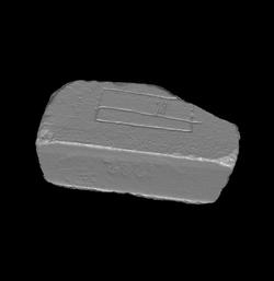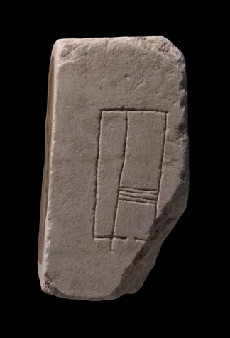 | Description The fragment was the corner of a slab. The left side and the bottom were sawed off in 1742 when the piece was exhibited in wooden frames in the Capitoline museums, hence the four straight edges. A clamp hole is visible along the lower right edge. The fragment depicts a rectangular structure that is divided into two elongated rooms. A small opening at the bottom gives access to the main room on the right, and stairs lead from the front to the rear of the room. The narrow section along the left has no openings. The building is surrounded by open space. The fact that the fragment was cut in the 18th c. along the left side and the bottom suggests that these areas were blank and that the open space continued in those directions.