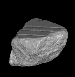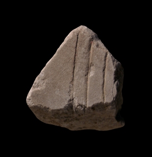 | Description Parts of three concentric arcs occupy the right half of the fragment. The area between the two outer lines is recessed.