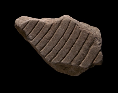 | Description Eleven parallel lines, slightly curved, traverse the fragment. The area between four of the lines is recessed.