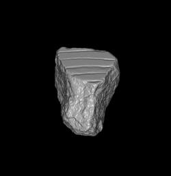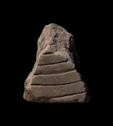 | Description Five concentric arcs traverse the fragment. The area between the second and the third innermost lines is recessed. The fragment was part of the lower edge of slab VIII-4.