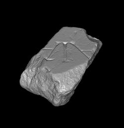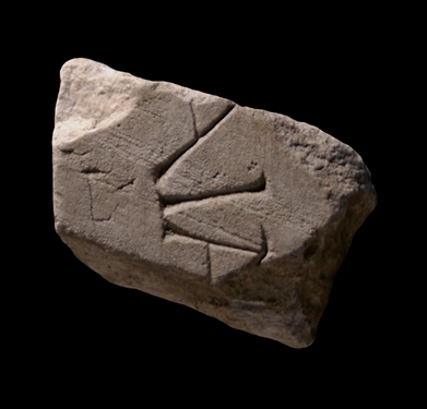 | Description The fragment was part of a slab edge. It depicts the letters AIA. The inscription is cut off on both ends by the broken edges. The left edge broke along the outer line of the first A, whereas the right edge largely ignores the line of the second A. This might suggest that there were two different episodes of fragmentation, one in which the blow came from the back of the slab (causing the break along the A), and a second which came from the front of the slab (causing the break that did not follow the line of the A). Another explanation may be that the parallel breaks follow the vein of the marble.