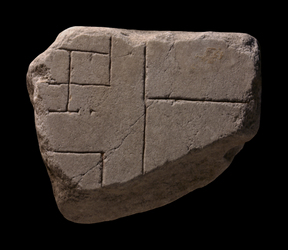 Together, the three pieces show a row of shops facing a street and a triangular or trapezoidal courtyard or open space. The tabernae also seem to back onto a large courtyard. The most common type of tabernae on the Plan consists of a single room that opens directly onto a street. This type of shop could function as a shop, as a dwelling, or, probably more commonly, as a combination of the two. In single-room shops, a wooden loft probably served as the actual dwelling area (Reynolds 1996, pp. 158-9). This fragment may depict a type of tabernae that had an additional room in the back. Such structures have been found in both Ostia and Pompeii. The back room was either used as the family residence or, if the front room had a loft, as a work and/or storage space. Other examples of such tabernae can be seen in frs. 11a, 11c and 11fgh (Reynolds 1996, fig. 3.13).