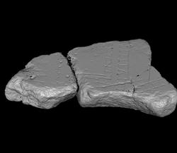 Identification: Templum Pacis In 1937, A.M. Colini joined these two fragments to fr. 15c, which contained the partial inscription [---]CIS, and identified the group as a large section of the templum Pacis, based on the similarity between the topography depicted on the fragments and the few uncovered remains of the building. The join between the pieces is not perfect but is confirmed by the aligning architecture and the veining of the marble (PM 1960, p. 73, with reference to Colini 1937). A small section of the building is also visible in fr. 16a. Constructed by Vespasian between 71 and 75 CE to commemorate his victory over the Jews and the destruction of Jerusalem, the Temple of Peace was in reality the third in the row of great imperial fora; not surprisingly, late antique sources occasionally refer to the building as forum Pacis or forum Vespasiani (LTUR IV, p. 67; Richardson 1992, p. 287). The Templum Pacis was a structure of great significance in antiquity as today: it gave its name to the 4th Augustan region; ancient sources such as Pliny (N.H. 36.102) proclaimed it one of the most beautiful buildings in Rome; it contained a library and the richest collection of art works known, including some moved from Nero's Domus Aurea ; and, most importantly in this particular context, after a fire in 192 CE, the building was restored between 208 and 211 CE by Septimius Severus, who subsequently placed in it his great marble map of Rome, now known as the Forma Urbis Romae (LTUR IV, pp. 67-68; Richardson 1992, pp. 286-87). The building was destroyed by an earthquake in 408 CE. but immediately restored. In the 6th c. CE, it was in poor condition (a lightning strike had caused yet another fire), and recent excavations suggest that it was used as a cemetary at that point (to read about the current excavation of the building, click here). Between 526 and 530, the S corner of the structure - including the wall that held the Severan map - was incorporated into the Church of Saints Cosmas and Damian (LTUR IV, p. 68, with references).