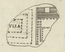Significance The political, religious, monumental and symbolic core of ancient Rome, the Roman Forum is a crucial area for our knowledge of Roman topography. Unfortunately, the part of the Marble Plan that depicted this area was largely destroyed in the early 5th cent. when the wall of the aula was perforated here to create a passageway (AG 1980, p. 21; schematic rendering of the wall in PM 1960, p. 180). The drawing of this fragment is important because it depicts a section of this nodal point in Rome. |