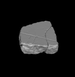 | Rodríguez-Almeida 1991-92, Section D): FUR frs. 221, 227, 229, 239, 243, and 246 can now with certainty be identified as belonging to slab VIII-8 (Stanford #). A combination of the thickness of these pieces, the presence of a belt of micacious, green specks that traverses them all, and the natural gradient of the slab even allow for their position within the slab to be calculated (fig. 12). The platform visible in frs. 221, 227, 229, 239 and 243 matches a structure of travertine blocks, which, according to R. Lanciani (Lanciani 1893-1901, pl. 21), existed in the subsoil between the Largo Cairoli, the church of Santa Maria in Monticelli and the Palazzo Cenci. |