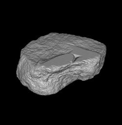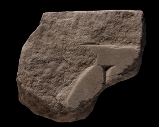 | Description The fragment was part of a slab edge. Almost parallel to the slab edge is a horizontal line. Below this line, sections of two or three letters are visible.