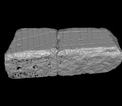 | Description The joining fragments were part of a slab edge. A clamp hole is visible on the side, at the bottom of fr. h. They depict a row of back-to-back tabernae, fronted on the right by an arcade or covered colonnade. A narrow passageway cuts through the row at top.