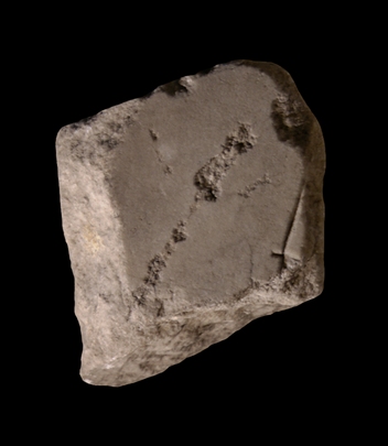 | Description A straight line follows the left edge of the fragment and stops short of reaching the other edge. It is crossed by a short bar at the end.