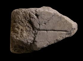 | Description The fragment was part of a slab edge. It depicts a straight line.