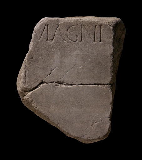 | Description The fragment is blank except for a horizontal inscription, MAGNI, at top and a vertical line along the left edge.