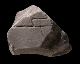 | Description A horizontal line traverses the fragment. Two lines emerge from this line at oblique angles, one at top, one below. Another horizontal line lies parallel to the first line in the top right corner.