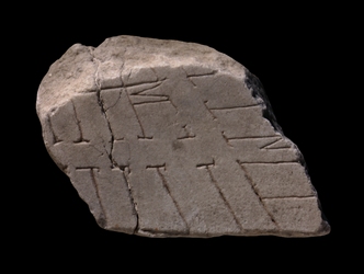 | Like the majority of FUR fragments, this piece was discovered in 1562 in a garden behind the Church of Saints Cosmas and Damian. From here, it was transferred to the Palazzo Farnese and stored there. It was not among the fragments that were reproduced in the Renaissance drawings that are now kept in the Vatican, but Giovanni Pietro Bellori included it in his 1673 publication. In 1742, the fragment was moved to the Capitoline Museums and exhibited with some of the other known fragments in wooden frames along the main staircase. Since then, it has been stored with the other FUR fragments in various places: the storerooms of the Capitoline Museums (1903-1924), the Antiquarium Comunale (1924-1939), the Capitoline Museums again (1939-1955), the Palazzo Braschi (1955-1998), and since 1998 in the Museo della Civiltà Romana in EUR under the auspices of the Sovraintendenza ai Beni Culturali del Comune di Roma. (This fragments history corresponds to Iter E as summarized in PM 1960, p. 56.)