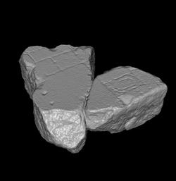 | Description The upper right corner of a large courtyard is visible on the lower left. Two visible columns suggest the courtyard was colonnaded. A small opening at top gives access from the peristyle to a series of rooms above it; at least three can be seen. It is uncertain whether additional rooms at top are part of the same complex. Another series of rooms flanks the peristyle on the right. They are all connected via small openings. The middle room contains what seems to be a narrow path around an elliptical feature. The bottom room is divided into two smaller rooms. A passage through them gives access to another, larger room on the far right.