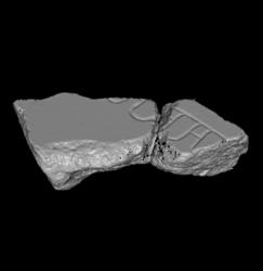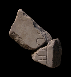 Two attached fragments, the larger piece at the top left is 37Bf. Fragments show a series of half-oval structures connected by a dash. This probably represents the arches of an aqueduct flanking the left side of a road.