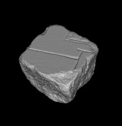 | Description The fragment shows the back corner of a peripteral sine postico temple. The back wall, the wall of the cella and the single visible column are drawn in outline which is the norm for temple architecture on the Plan. Behind the temple the corner of another building is visible. From this feature extends a long wall or edge, parallel to the back of the temple.