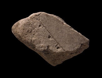 | Description The surface of the fragment is corroded. It depicts a row of columns abutting the edge or wall of an unknown structure. One of the columns is perhaps represented with a dotted square.