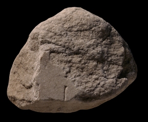 | Description Only a fraction of the original surface of this fragment is preserved. The end of a vertical line emerges from the bottom edge. According to the drawing in AG 1980, pl. 48, a parallel line is visible on the left. This is not clear, however, from the photo above.