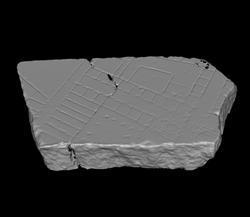 Identification: possible connection with 475 A combination of wall feature matching procedure and boundary incision matching at Stanford has proposed a match with fragment 475 (Koller-Levoy 2005, 9-10). The boundary incision matching algorithm identified a possible match between frs. 421and 475 (fig. 24). In this hypothetical join, three pairs of incisions align across the slab boundary between the two fragments, and the ductus is not dissimilar. Examination of the actual marble fragments confirmed the plausibility of this match (fig. 25).