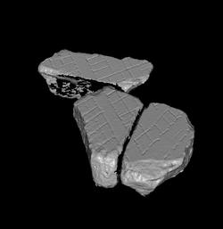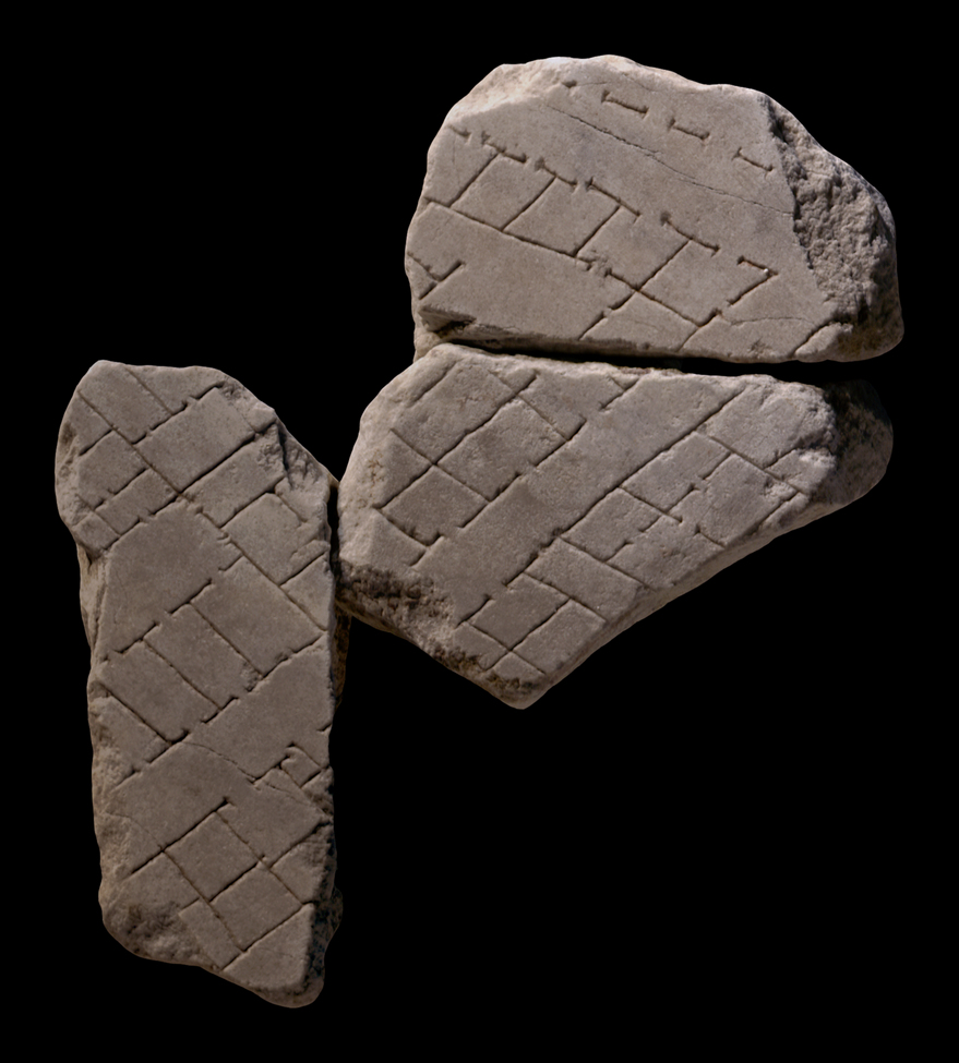 | Like the majority of FUR fragments, these three now joined pieces were discovered in 1562 in a garden behind the Church of Saints Cosmas and Damian. From here, they were transferred to the Palazzo Farnese and stored there. They were not among the fragments that were reproduced in the Renaissance drawings that are now kept in the Vatican, but Giovanni Pietro Bellori included them in his 1673 publication. In 1742, the fragments were moved to the Capitoline Museums and exhibited with some of the other known fragments in wooden frames along the main staircase. Since then, they have been stored with the other FUR fragments in various places: the storerooms of the Capitoline Museums (1903-1924), the Antiquarium Comunale (1924-1939), the Capitoline Museums again (1939-1955), the Palazzo Braschi (1955-1998), and since 1998 in the Museo della Civiltà Romana in EUR under the auspices of the Sovraintendenza ai Beni Culturali del Comune di Roma. (The history of these fragments corresponds to Iter E as summarized in PM 1960, p. 56.)