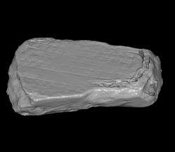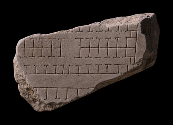 | Description The fragment was part of a slab edge. It depicts four parallel rows of equal-sized tabernae, all bordered on the right by a perpendicular wall. The second row from the top is divided in the middle by a wide passage; this row consists of back-to-back shops. The bottom two rows are separated from each other by a passageway. Of these, the top row faces up, the bottom row faces down.