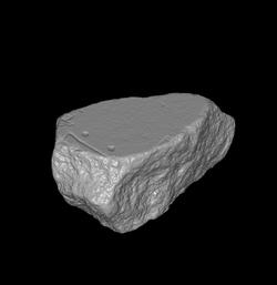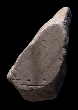 | Description At the bottom, the fragment depicts the corner of a structure with two columns of a colonnade placed alongside its wall. The corner of another feature is visible in the right edge, a little above the colonnaded feature.