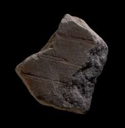 | Description Three parallel double lines, slightly recessed, traverse the fragment.