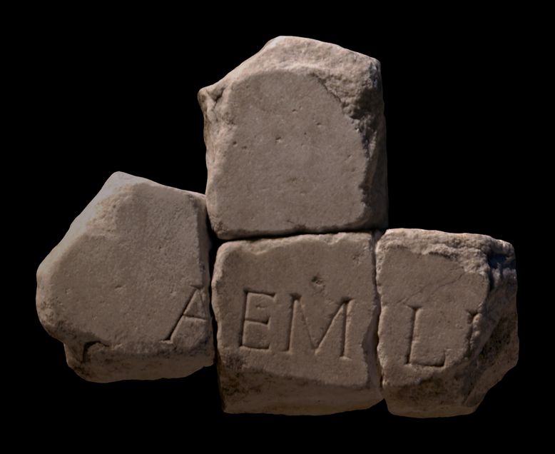 | Description The three joined fragments depict a blank area with the letters AEMILI[...] engraved across the space.