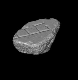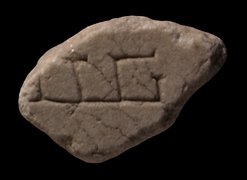 | Description The small fragment depicts a row of rooms, at least four, of equal size. The two visible rooms on the left open toward the top of the fragment, while the end room has an opening in the side that turns away from the row.
