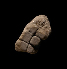 | Description A slightly curved, vertical line traverses the tiny fragment down the center. It is intersected in two places by two straight, horizontal lines, creating the effect of three small compartments on either side of a central axis.