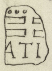 | Description The fragment itself is lost but Renaissance drawing Cod. Vat. Lat. 3439 - Fo 22r shows what it depicted (see photo detail above or PM 1960, pl. 13, no. 18). At top, three columns from a horizontal colonnade were visible. Below the colonnade and parallel to it were four elongated features, divided into two vertical and horizontal rows. Below these, the letters [---]ATI[---] appeared.