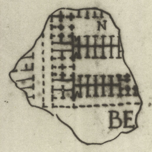 Identification E. Rodríguez-Almeida has tentatively suggested that the fragment was the corner of a slab (AG 1980, p. 171, pl. 60). As to the function of the double courtyard building, he muses that it looks like a warehouse (horreum) but concludes that the double entrances to the courtyards make it more likely that the building served as living quarters for specific groups, perhaps workers. Despite the difference in the size of the letters and the great distance between them, Rodríguez-Almeida merges the two lines and reconstructs the inscription that labeled the building as [PRASI]NA/BE[NETA](AG 1980, p. 171). Another possibility is to identify the structures as shopping bazaars, characterized by D. Reynolds as tabernae facing in on court spaces (for examples of such on the Plan, see Reynolds 1996, fig. 3.21). The prominent inscriptions like the two in this fragment render this interpretation unlikely, however. While large warehouse structures generally are labeled on the Plan, the only group of shops deemed worthy of a label is the macellum in fr. 157. The rectilinear layout and seemingly utilitarian nature of the building in this fragment place the piece in the S corner of the Plan, in an area of Rome that was flat, close to the Tiber, and occupied by similar buildings (see for example the architecture in fragment groups 24, 25, 28, 33, and 34).