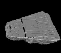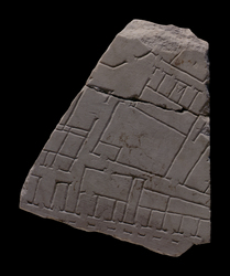 | This fragment was excavated in 1956 in the aula of the Templum Pacis in which the Marble Plan was originally installed (PM 1960, p. 160; AG 1980, p. 24). |