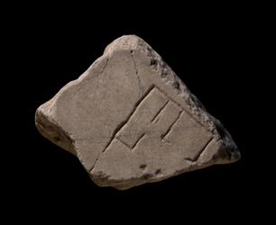 | Description The fragment depicts the corner of a building. Two rooms open onto a peristyle.