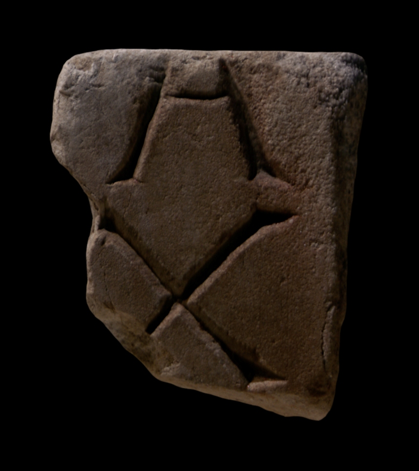 | Description This piece is part of the edge of a slab. Two letters, A and X, are arranged vertically.