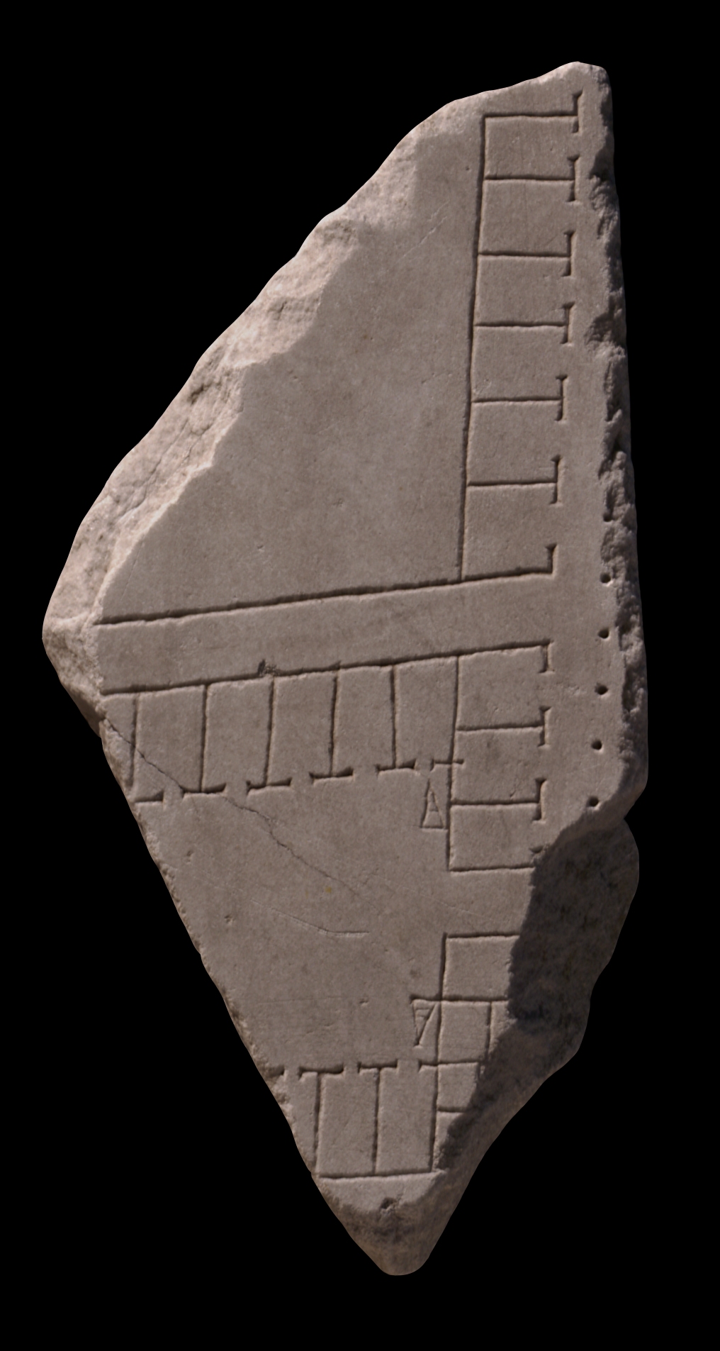The incised architectural features on frs. 92 and 138 also align well: the street that separates the two buildings on fr. 92 is exactly in line with a street on fr. 138b, and the relative orientation is that expected given their slab edges. Furthermore, the line that forms the right wall of the structure on the right of fr. 92 continues on fr. 138, where it forms the edge of a second street, parallel to the first. The angle of the riverfront tabernae on fr. 92, relative to the slab edge, is the same as the large street that traverses fr. 138bcde. Also, the entrance to the courtyard in the left structure of fr. 92 is directly opposite the stairway entrance to the corresponding space on fr. 138b.