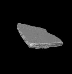 D. Koller proposed a position for this fragment along the upper edge of slab VI-8 near frs. 138a and 138bcde, corresponding to a location on the bank of the Tiber in Trastevere (Koller-Levoy 2005). Fr. 92 shares the rough back surface of other fragments located in this slab, and its thickness ranges from 63mm along the slab edge up to 67mm at the bottom tip, a gradient which is consistent with that of fr. 138 nearby.
