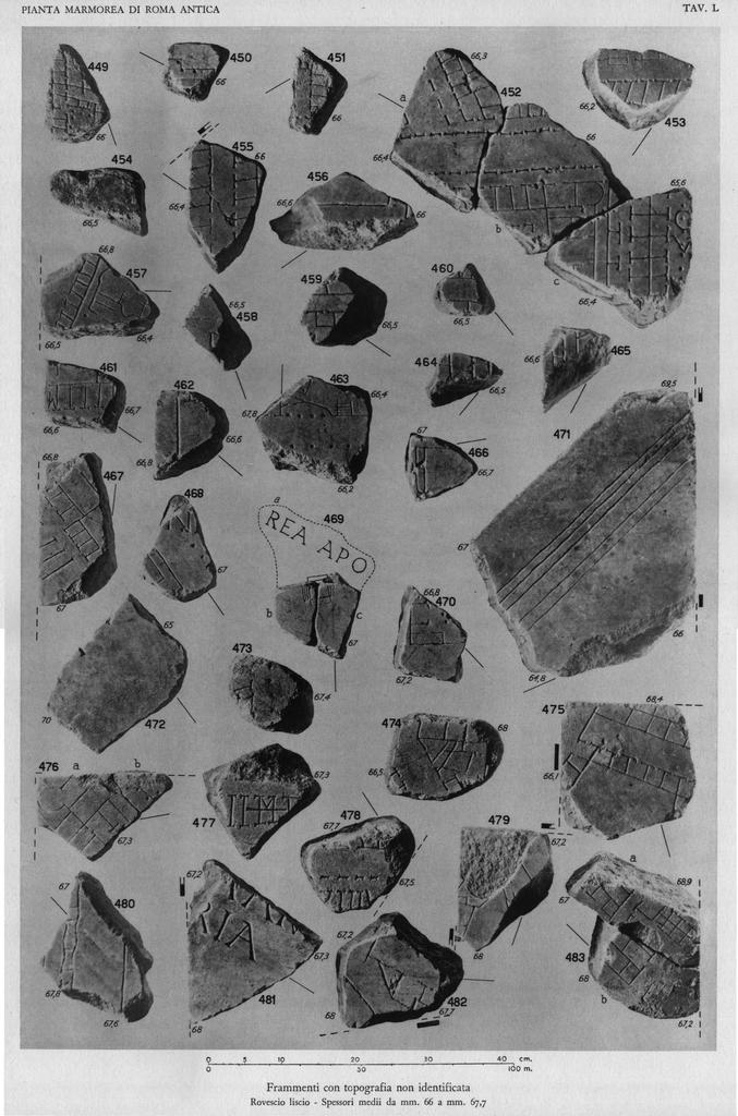 | 8o | 8o | 470 | VIII-5 | smooth | Building with peristyle (a domus?) between the Caelian and the Palatine Hill |